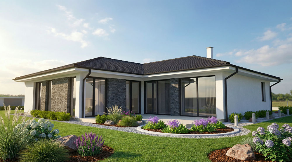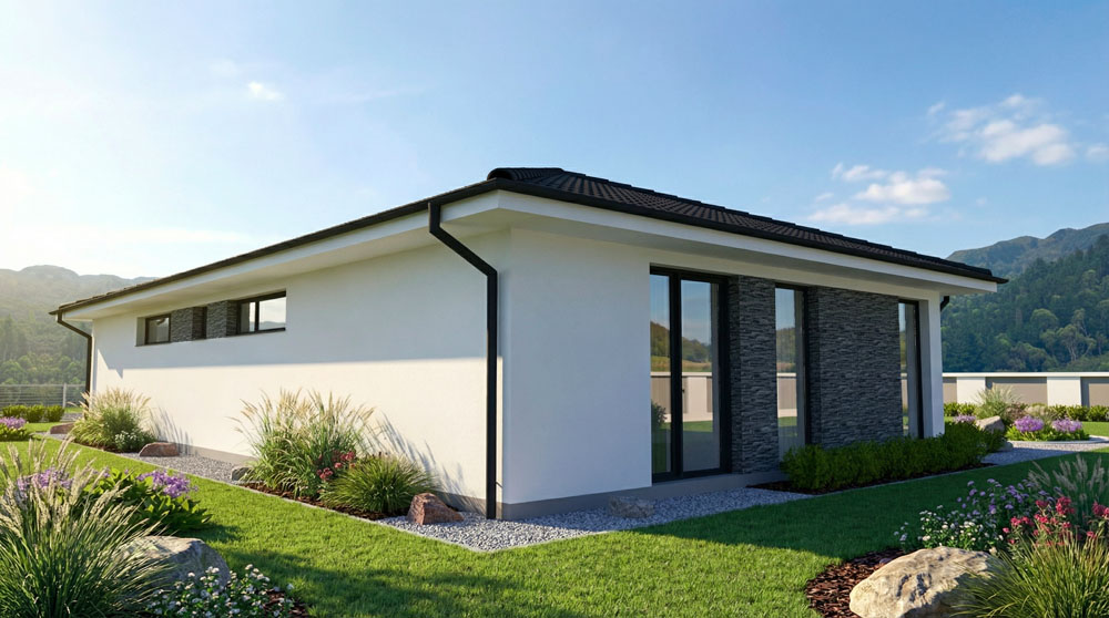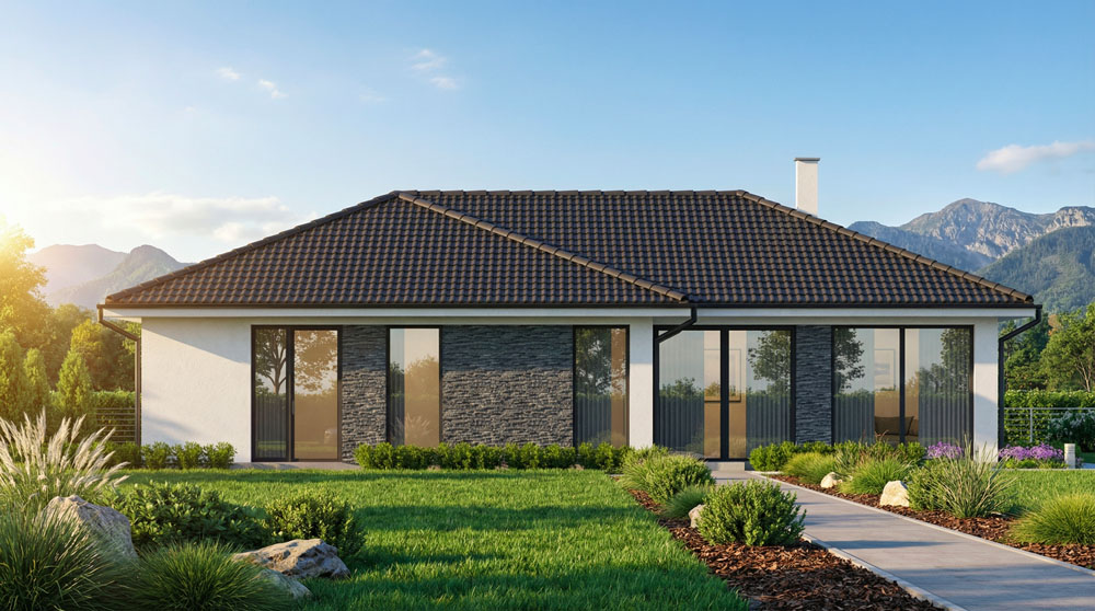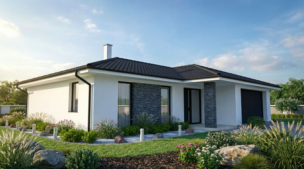 Největší dům na klíč z naší nabídky typových staveb. Téměř 160 m2 prostoru, který obsahuje i garážové stání pro dva vozy. Nabídne dostatek životního prostoru a jeho nadčasový design bude sloužit nejen vaší rodině, obdivovat ho budou i hosté a lidé, kteří zrovna půjdou okolo.
