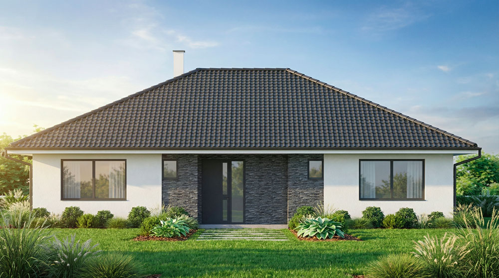 Dům na klíč, jehož vnitřní rozměry vás příjemně překvapí. Dispozice je ideální pro čtyřčlennou rodinu a je chytře navržena tak, aby se každý člen domácnosti cítil pohodlně.